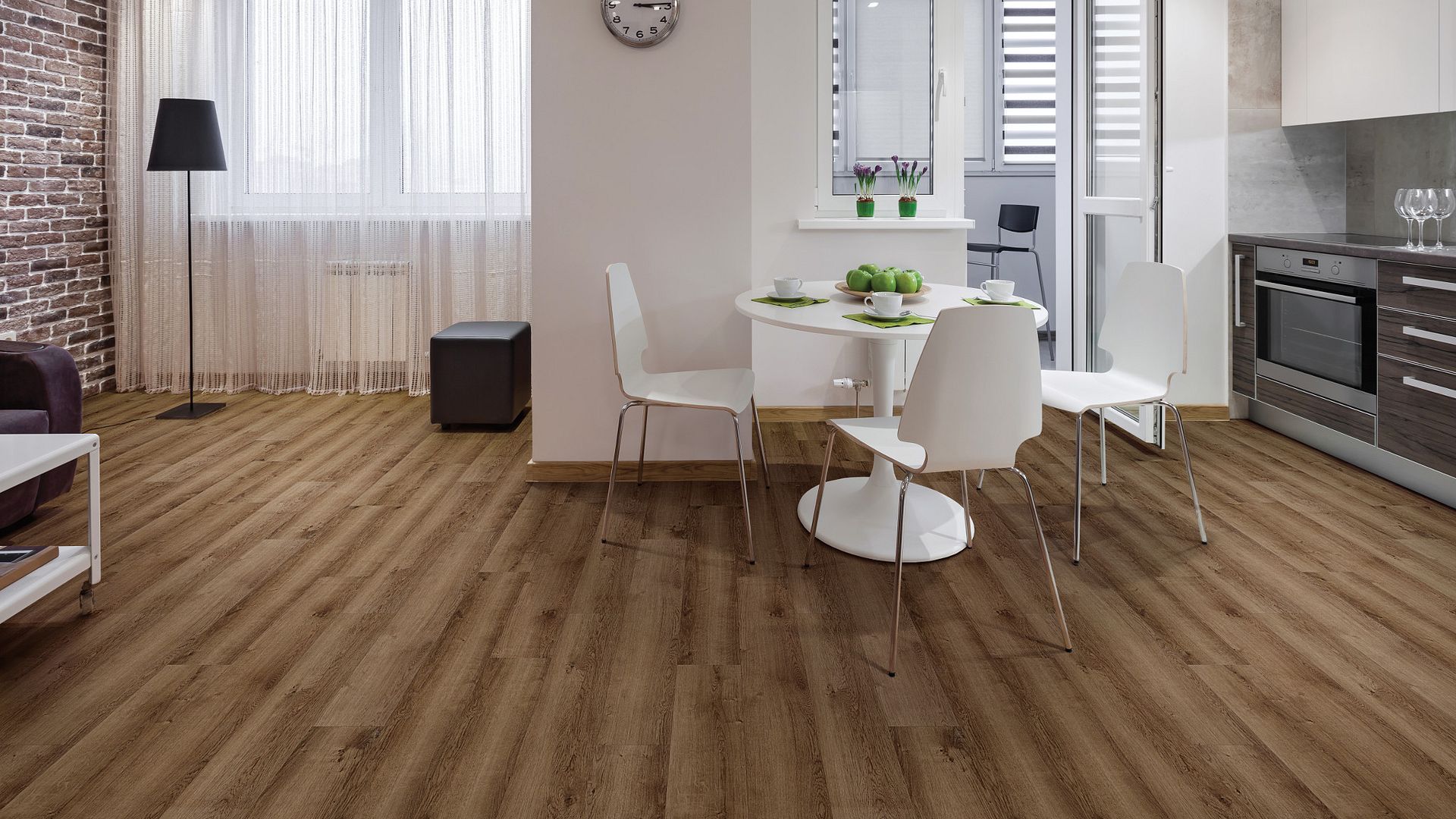 The new Pro Plus collection takes the stylish appearance of COREtec and toughens it up for high traffic residential, or even commercial use. The rigid core features special top and bottom layers for stability, and is constructed from a high-density composition for extra rigidity, providing superior dent and impact resistance. Since COREtec is 100% waterproof, COREtec Pro Plus floors can be installed in wet areas and will never swell when exposed to, or even submerged in water. COREtec is also dimensionally stable, so it will not expand or contract under normal conditions, and never needs expansion strips in large rooms. Each COREtec Pro Plus plank or tile has an attached cork underlayment for a quieter, warmer vinyl floor that is naturally resistant to odor causing mold and mildew. All styles in the COREtec Pro Plus Collection feature the patented COREtec® technology.